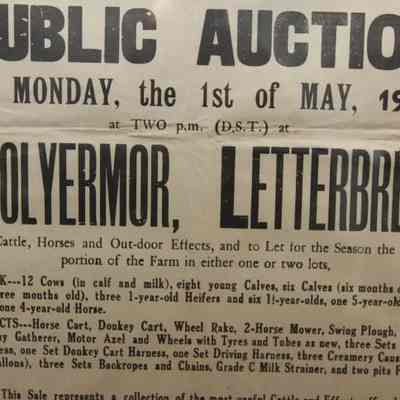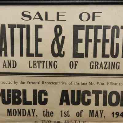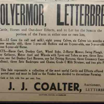 FR BROADSIDE, 1944, COOLYERMOR, LETTERBREEN. SALE OF CATTLE & EFFECTS AND LETTING OF GRAZING PUBLIC AUCTION. J.J. COALTER, AUCTIONEER. 18 1/2" X 22 1/2"Created By