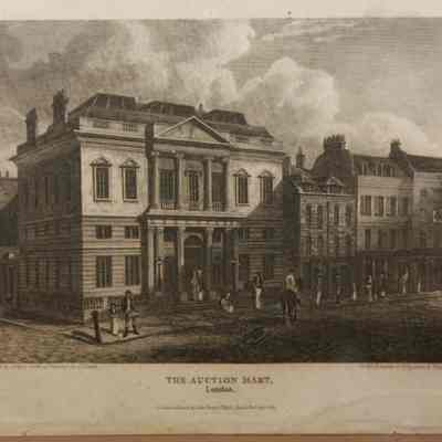 FR ENGRAVING, 1815, LONDON, ENGLAND. "THE AUCTION MART" 11 1/4" X 9 1/4"