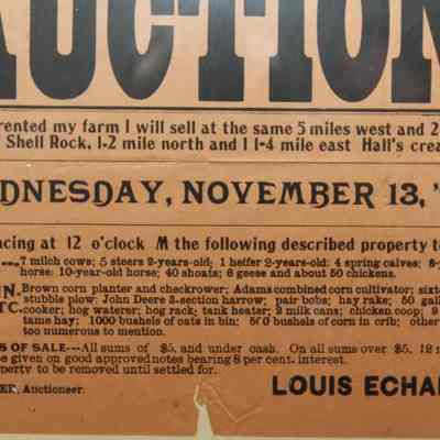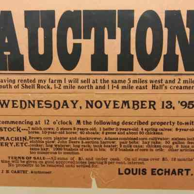 FR BROADSIDE, 1895, IA. LIVESTOCK, MACHINERY. J.H. CARTER, AUCTIONEER. 13 1/2" X 13 1/2"