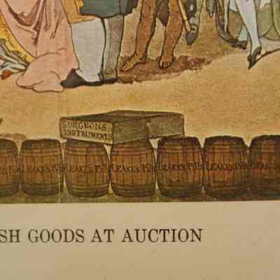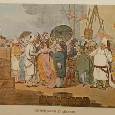FR COLOR PRINT, "BRITISH GOODS AT AUCTION" POSSIBLY A SCENE IN INDIA WITH BRITISH AUCTIONEER. 15" X 12"Created By