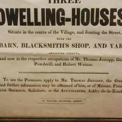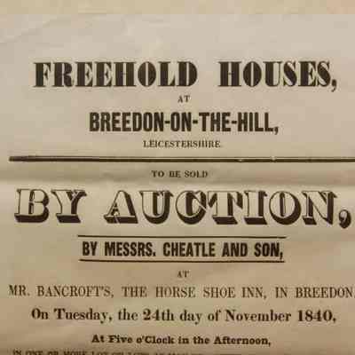 FR BROADSIDE, REAL ESTATE, 1840, LEICESTERSHIRE. FREEHOLD HOUSES TO BE SOLD BY AUCTION BY MESSRS. CHEATLE & SON, AUCTIONEERS. THREE DWELLING-HOUSES WITH THE BARN, BLACKSMITH'S SHOP AND YARD. 12" X 15"Created By