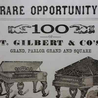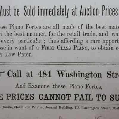 FR BROADSIDE, BOSTON, MA. RARE OPPORTUNITY! 100 OF T. GILBERT & CO'S GRAND, PARLOR GRAND AND SQUARE PIANO FORTES MUST BE SOLD IMMEDIATELY AT AUCTION PRICES. 12" X 24"Created By