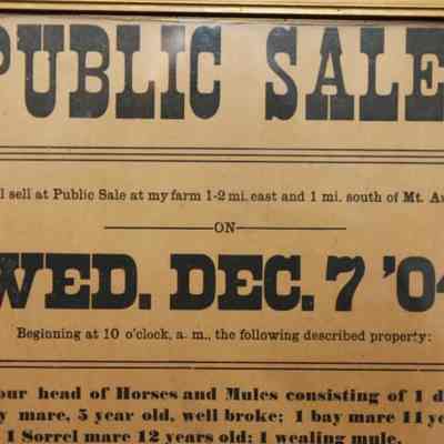 FR BROADSIDE, 1904, MT. AUBURN. PUBLIC SALE, LIVESTOCK, IMPLEMENTS, HOUSEHOLD. M.L. FUNDERBURK, AUCTIONEER. 13 3/4" X 17 1/4"Created By