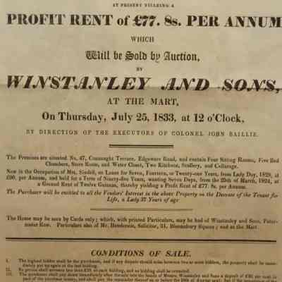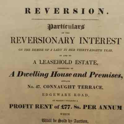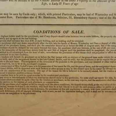 FR BROADSIDE. 1833, PARTICULARS OF THE REVERSIONARY INTEREST ON THE DEMISE OF A LADY IN HER 38TH YEAR, IN AND TO A LEASEHOLD ESTATE CONSISTING OF A DWELLING HOUSE AND PREMISES. WINSTANLEY AND SONS, AUCTIONEERS. 13 1/2" X 17 1/2"Created By