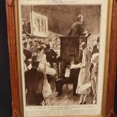FR PRINT FROM THE ILLUSTRATED LONDON NEWS, 1925. "THE AMAZING SALE: THE SARGENTS UNDER THE HAMMER" THE SCENE AT CHRISTIE'S DURING THE KNOCKING - DOWN OF THE SARGENT WATER-COLOURS AND OIL PAINTINGS. 15" X 19"Created By