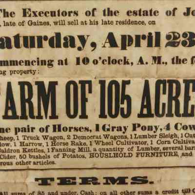 FR BROADSIDE, 1864, FARM, NY. EXECUTOR'S SALE! FARM OF 105 ACRES, LIVESTOCK, ETC. 13" X 19"