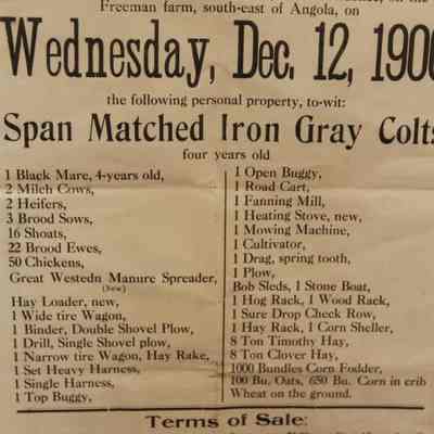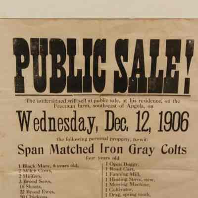 FR BROADSIDE, 1906, IN. PUBLIC SALE - LIVESTOCK, EQUIPMENT. ALVAH CARPENTER, AUCTIONEER. 14 1/4" X 18 1/4"Created By