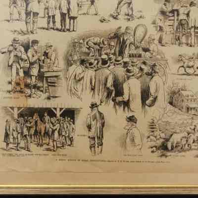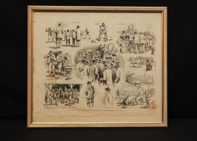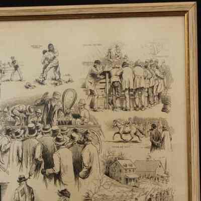 FR PRINT FROM HARPERS WEEKLY, 1887. "A SPRING AUCTION IN RURAL PA" 16" X 13"