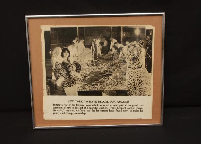 FR ADVERTISING, FUR AUCTION. PHOTO OF SKINS IN WAREHOUSE "NEW YORK TO HAVE RECORD FUR AUCTION" 20 1/4" X 16 1/4"Created By
