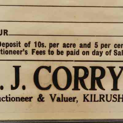 FR BROADSIDE, BLANK FORM "AUCTION OF PRIME MEADOWING" J.J. CORRY, AUCTIONEER, KILRUSH. 16" X 20"Created By
