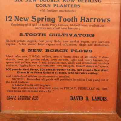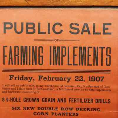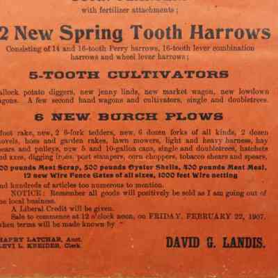 FR BROADSIDE, 1907, FARMING IMPLEMENTS, HARRY LATCHAR, AUCTIONEER. 8 1/4" X 12"