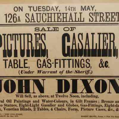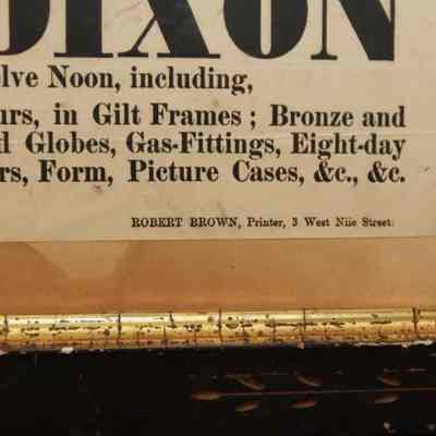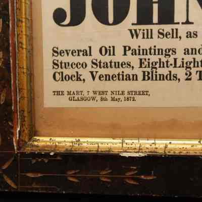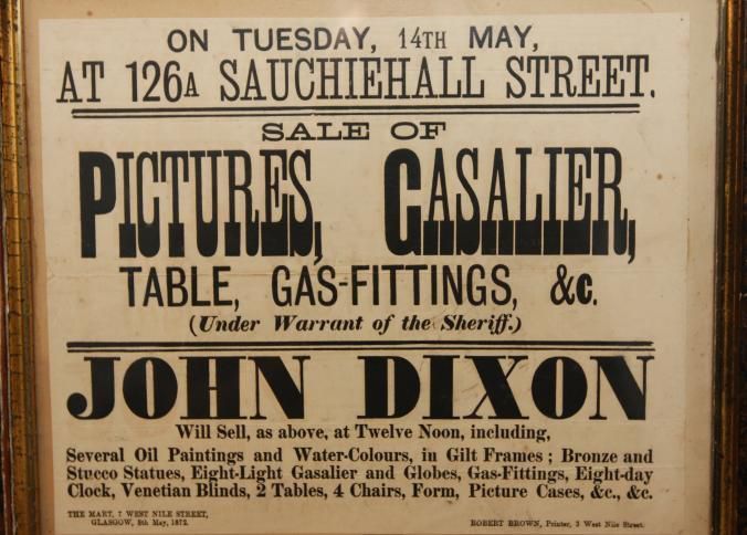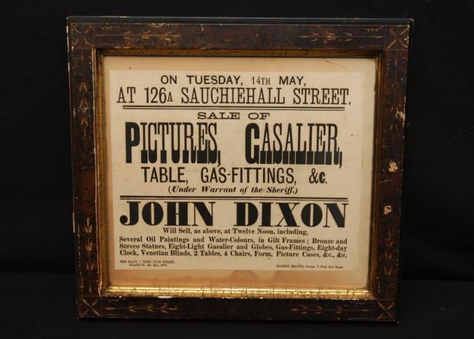 FR BROADSIDE, 1872, GLASGOW. PICTURES, CASALIER, TABLE, GAS FITTINGS, ETC. JOHN DIXON, AUCTIONEER. 14 1/2" X 12 1/2"Created By