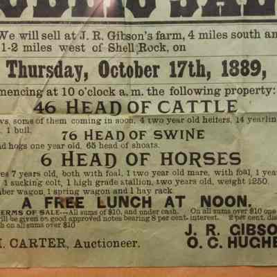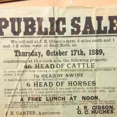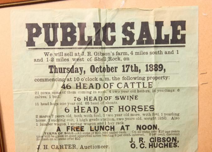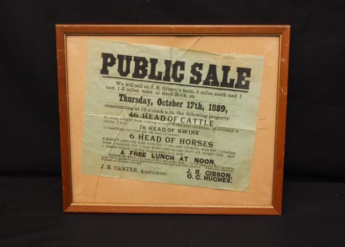 FR BROADSIDE, 1889, PUBLIC SALE, LIVESTOCK. J.H. CARTER, AUCTIONEER. 15" X 12"