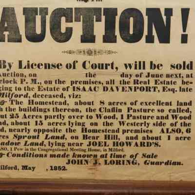 FR BROADSIDE, REAL ESTATE, 1852, MILFORD. GUARDIAN SALE OF REAL ESTATE AT AUCTION! BY LICENSE OF COURT. JOHN J. LORING, GUARDIAN. 15" X 12"Created By