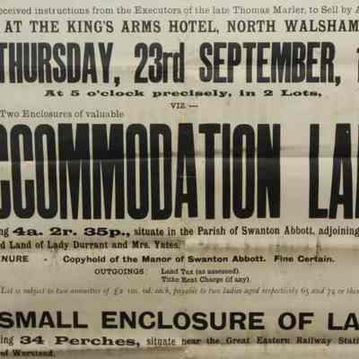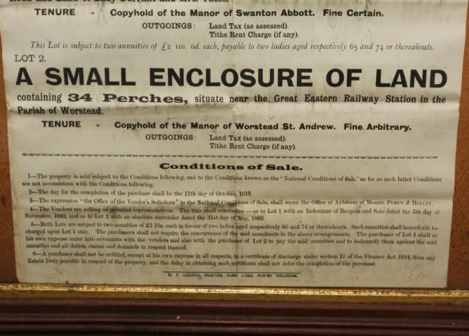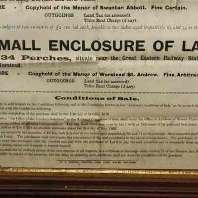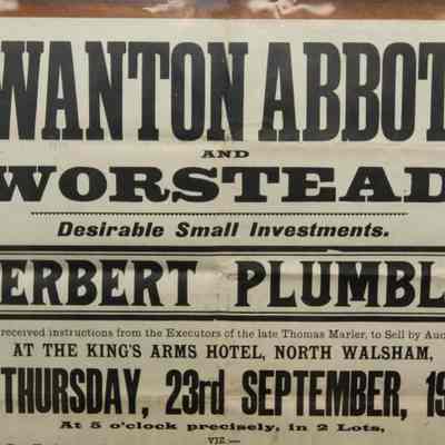 FR BROADSIDE, 1915, SWANTON ABBOTT AND WORSTEAD ACCOMMODATION LAND. DESIRABLE SMALL INVESTMENTS. HERBERT PLUMBLY, AUCTIONEER. 26" X 32"Created By