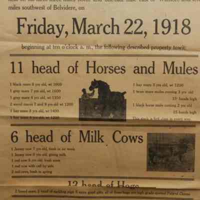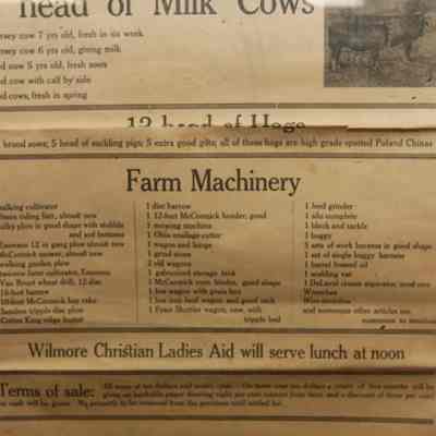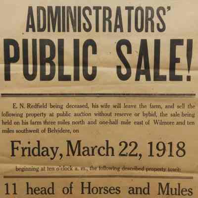 FR BROADSIDE, 1918, LIVESTOCK & MACHINERY, WILMORE. ADMINISTRATORS' PUBLIC SALE, 11 HEAD OF HORSES AND MULES, 6 HEAD OF MILK COWS, 12 HEAD OF HOGS, FARM MACHINERY. CHAS. FOREE, AUCTIONEER. 17" X 28"Created By