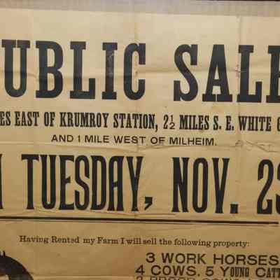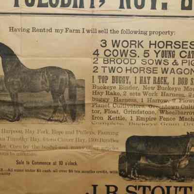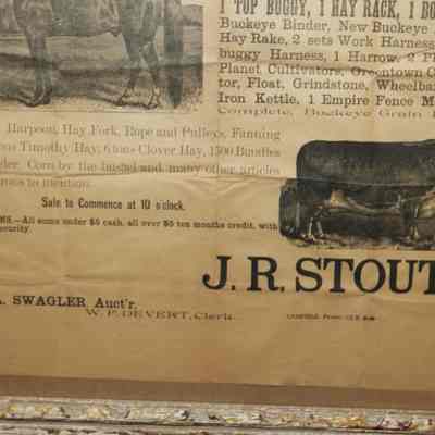 FR BROADSIDE, 1897, FARM, MILHEIM. LIVESTOCK, WAGONS, EQUIPMENT. J.A. SWAGLER, AUCTIONEER. B/W ILLUS WITH HORSE AND BULL. 25" X 31"Created By