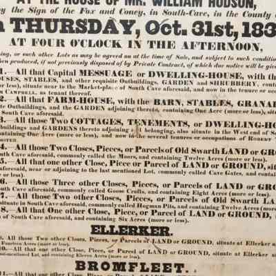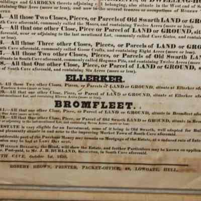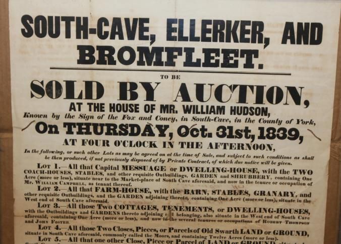 FR BROADSIDE, ESTATE, 1839, YORK COUNTY. SOUTH-CAVE, ELLERKER, AND BROMFLEET. 27" X 31"