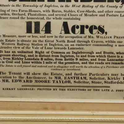 FR BROADSIDE, ESTATE, 1852, YORKSHIRE. 114 ACRES. MR. KILSHAW, AUCTIONEER. 24" X 28"