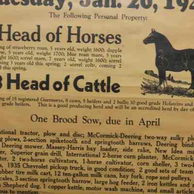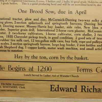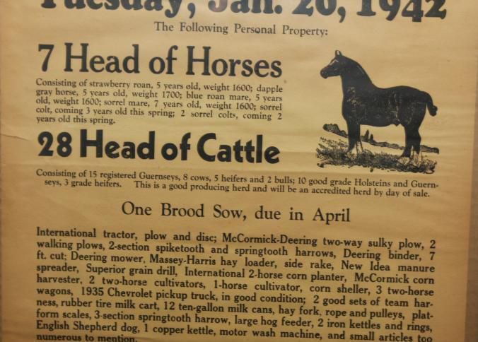 FR BROADSIDE, FARM, 1942, KY. HORSES, CATTLE, EQUIPMENT. C.A. FROMM, AUCTIONEER. 23" X 27"