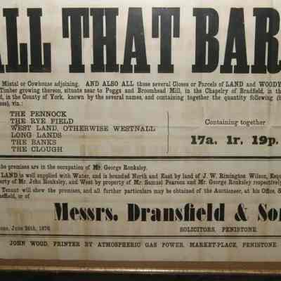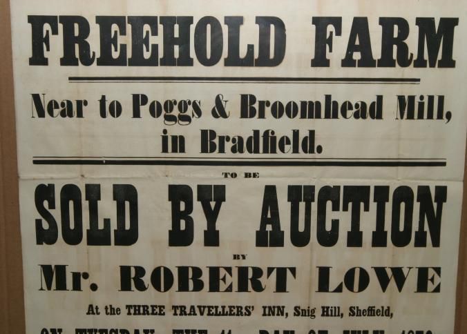 FR BROADSIDE, 1876, FREEHOLD FARM, BRADFIELD. MR. ROBERT LOWE, AUCTIONEER. 32" X 38"