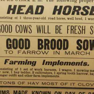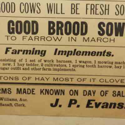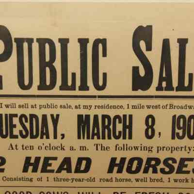 FR BROADSIDE, 1904, LIVESTOCK AND FARM IMPLEMENTS. C.M. WILLIAMS, AUCTIONEER. 12 3/4" X 16 3/4"