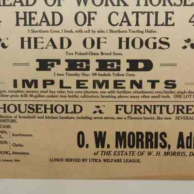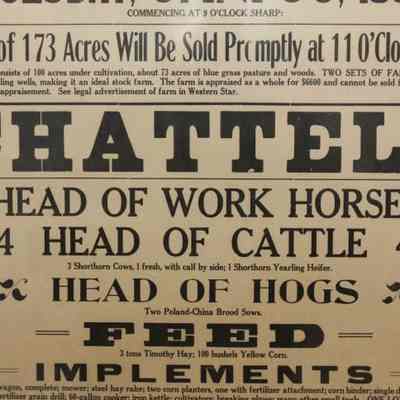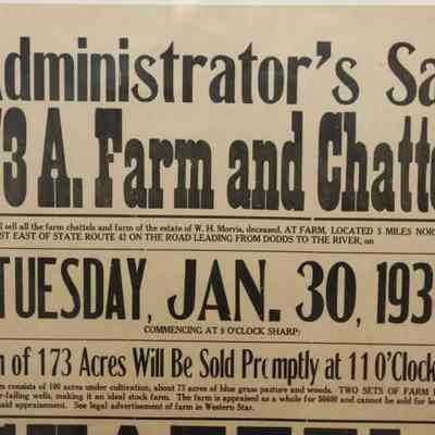 FR BROADSIDE, LIVESTOCK, 1934, OH. ADMINISTRATOR'S SALE 173 A. FARM AND CHATTELS. KARL M. BROWN & V.H. RUSSELL, AUCTIONEERS. 24" X 30"Created By