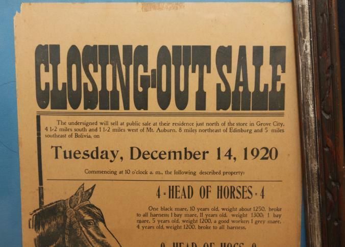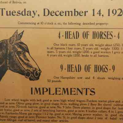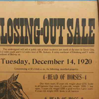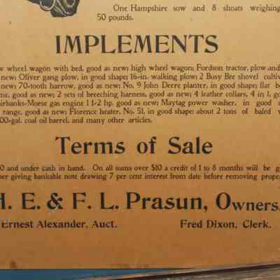 FR BROADSIDE, LIVESTOCK, 1920. HORSES, HOGS, IMPLEMENTS. CLOSING-OUT SALE. ERNEST ALEXANDER, AUCTIONEER. 18 1/2" X 22 1/2"Created By
