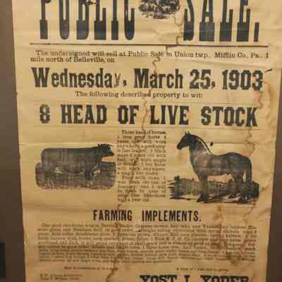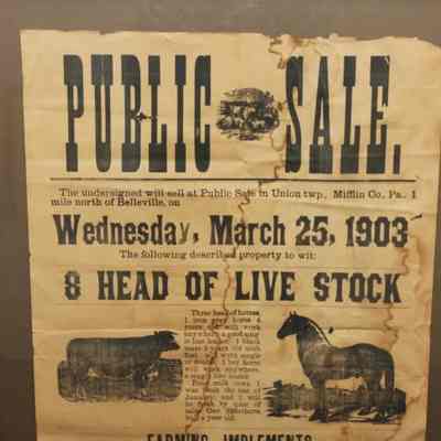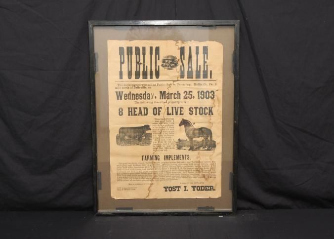FR BROADSIDE, LIVESTOCK, 1903, PA. PUBLIC SALE, 8 HEAD OF LIVESTOCK. S.W. ALLISON, AUCTIONEER. 24 1/2" X 31"Created By