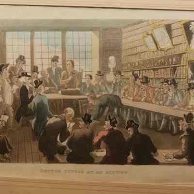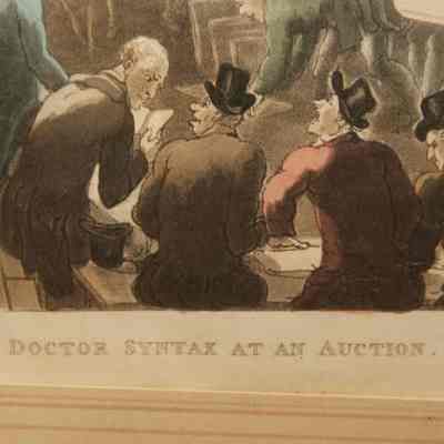 FR COLOR PRINT, "DOCTOR SYNTAX AT AN AUCTION" DRAWN BY ROWLANDSON. 11 1/2" X 8 1/2"
