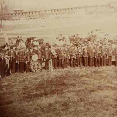 FR BLACK & WHITE PHOTO, MARCHING BAND. 12 3/4" X 11"