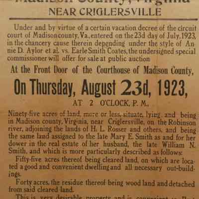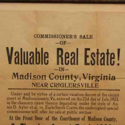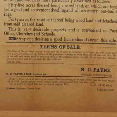 FR BROADSIDE, REAL ESTATE, 1923, VA. COMMISSIONER'S SALE OF VALUABLE REAL ESTATE! D.M. PATTIE & SON, AUCTIONEERS. 13" X 17"Created By