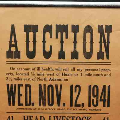 FR BROADSIDE, 1941, LIVESTOCK. AUCTION. 41 HEAD LIVESTOCK, FARM TOOLS, HAY AND GRAIN. M. L. DAVIS, AUCTIONEER. 11 1/4" X 14 1/4"Created By