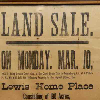 FR BROADSIDE, 1913, KY. LAND SALE. LEWIS HOME PLACE AND BATES PLACE. 12 1/4" X 14 1/4"