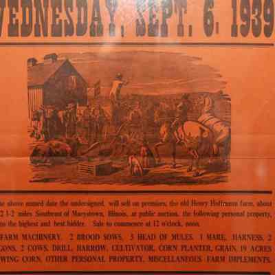 FR BROADSIDE, 1939, ESTATE, IL. ADMINISTRATRIX SALE! ILLUSTRATION OF FARM AUCTION. RUDOLPH KLEIN, AUCTIONEER. 16" X 19 1/2"Created By
