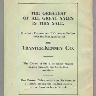 CAT, HORSE, 1904, MA. ANNUAL SPRING SALE OF TROTTING STOCK, BOSTON. THE TRANTER-KENNEY CO. PAGES NOT NUMBERED. 6" X 9" X 3/8"Created By