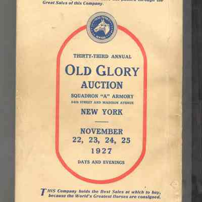 CAT, HORSE, 1927, NY. SQUADRON "A" ARMORY, FASIG-TIPTON CO, THE LEADING HARNESS HORSE AUCTION OF THE WORLD. TRANTER, AUCT. PRICES WRITTEN, 6" X 9" X 1"Created By