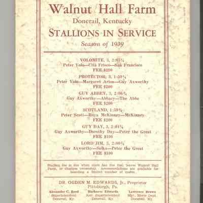 CAT, HORSE, 1938, KY. WALNUT HALL FARM YEARLINGS, FOALS OF 1937. KENTUCKY SALE CO. PRICES WRITTEN, 124 PP. 6" X 9"Created By