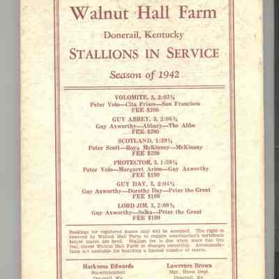 CAT, HORSE, 1941, KY. WALNUT HALL FARM YEARLINGS, FOALS OF 1940. KENTUCKY SALE CO. PRICES WRITTEN, 110 PP. 6" X 9"Created By