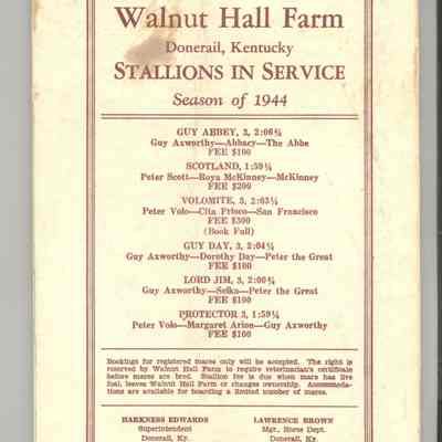 CAT, HORSE, 1943, KY. WALNUT HALL FARM YEARLINGS, FOALS OF 1942. KENTUCKY SALE CO. SOME PRICES WRITTEN, 95 PP. 6" X 9"Created By