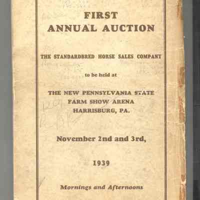 CAT, HORSE, 1939, PA. 1ST ANNUAL AUCTION, THE STANDARD BRED HORSE SALE CO., PA FARM SHOW ARENA, HARRISBURG. SWINEBROAD, KAY, AUCT. PRICES WRITTEN, 232 PP. 6" X 9"Created By