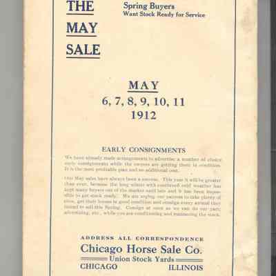 CAT, HORSE, 1912, IL. 36TH SALE OF THE CHICAGO HORSE SALE CO., UNION STOCK YARDS. GEORGE BAIN, AUCT. PRICES WRITTEN, 223 PP. 5 3/4" X 8 3/4"Created By