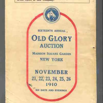 CAT, HORSE, 1910, NY. OLD GLORY HORSE AUCTION, "A GALAXY OF THE GREATEST HORSES OF THE WORLD" FASIG-TIPTON CO, GEORGE BAIN, AUCT. 6" X 9" X 1" PAGES NOT NUMBERED.Created By