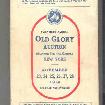 CAT, HORSE, 1914, NY. OLD GLORY HORSE AUCTION, "THE LEADING HARNESS HORSE AUCTION OF THE WORLD" FASIG-TIPTON CO, GEORGE BAIN, AUCT. 6" X 9" X 1" PAGES NOT NUMBERED.Created By
