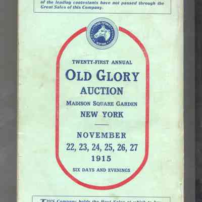 CAT, HORSE, 1915, NY. OLD GLORY HORSE AUCTION, "THE LEADING HARNESS HORSE AUCTION OF THE WORLD" FASIG-TIPTON CO, GEORGE BAIN, AUCT. 6" X 9" X 1" PAGES NOT NUMBERED.Created By