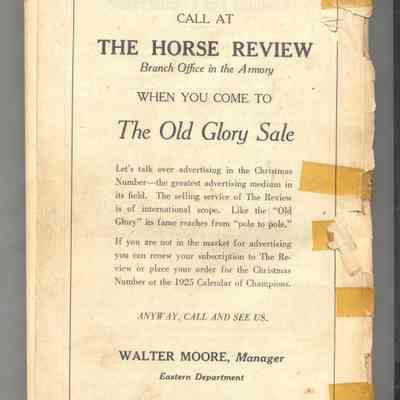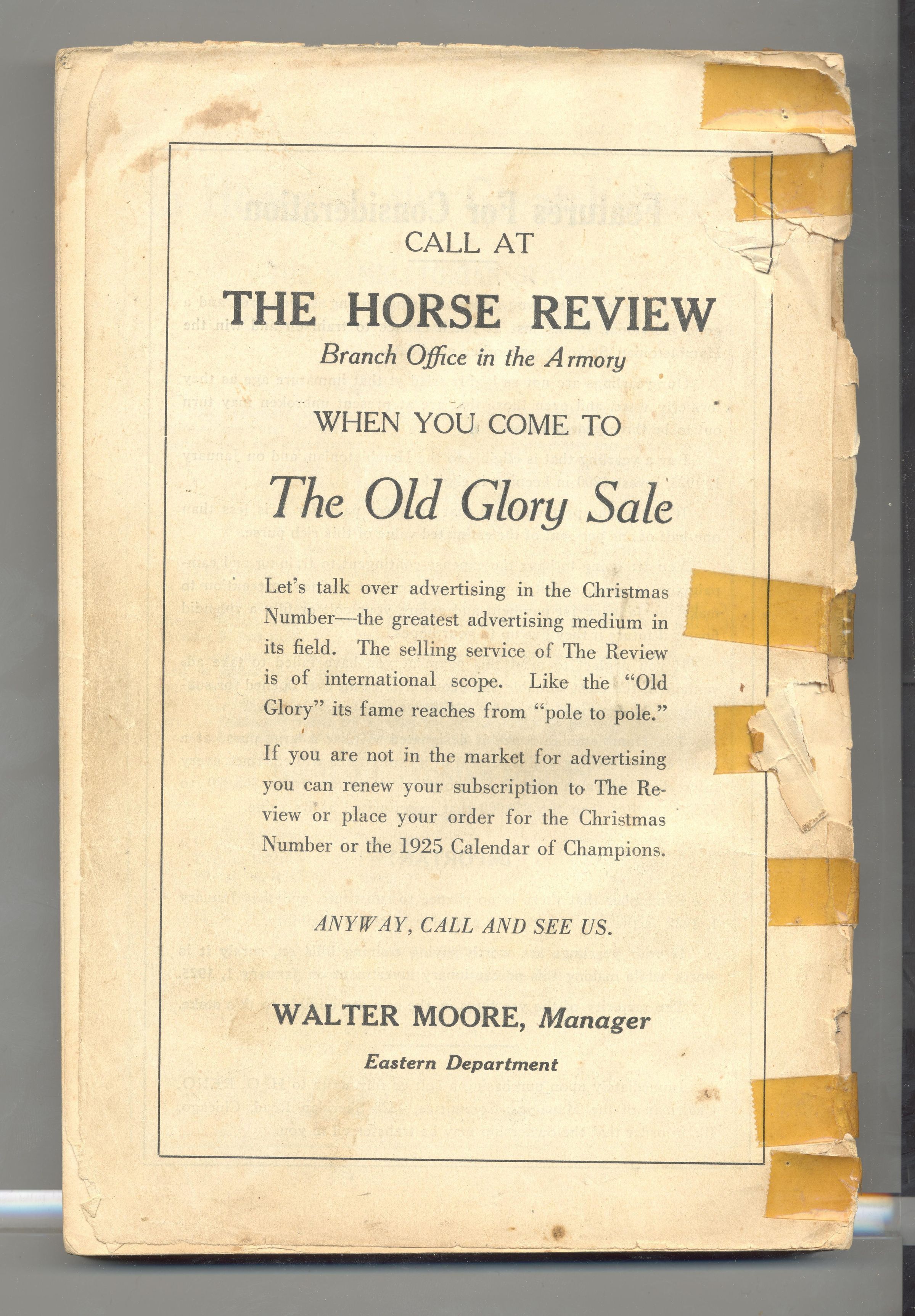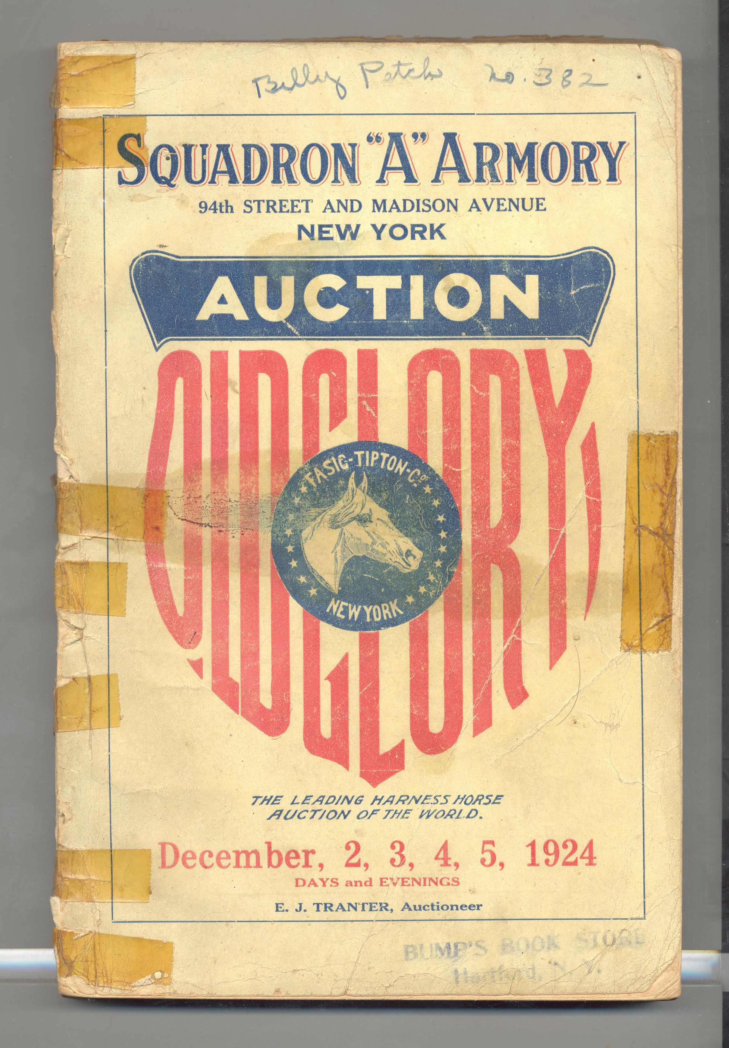 CAT, HORSE, 1924, NY. OLD GLORY HORSE AUCTION, "THE LEADING HARNESS HORSE AUCTION OF THE WORLD" FASIG-TIPTON CO, E.J. TRANTER, AUCT. SOME PRICES. 6" X 9" X 1/2" PAGES NOT NUMBERED.Created By