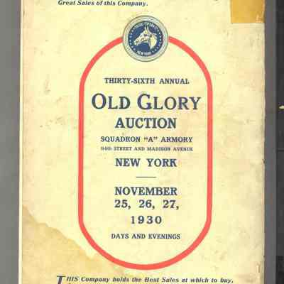 CAT, HORSE, 1930, NY. OLD GLORY HORSE AUCTION, "THE LEADING HARNESS HORSE AUCTION OF THE WORLD" FASIG-TIPTON CO, E.J. TRANTER AUCT. 6" X 9" X 3/4" PAGES NOT NUMBERED.Created By