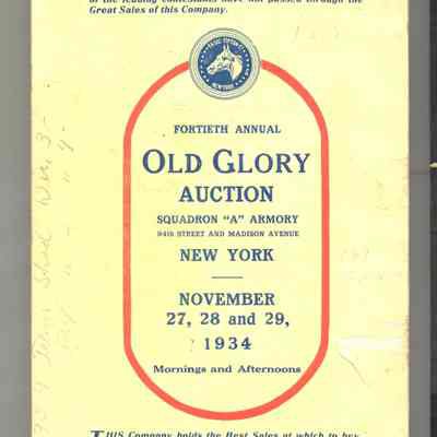 CAT, HORSE, 1934, NY. OLD GLORY HORSE AUCTION, "THE LEADING HARNESS HORSE AUCTION OF THE WORLD" FASIG-TIPTON CO, E.J. TRANTER AUCT. PRICES WRITTEN IN. 6" X 9" X 1/2" PAGES NOT NUMBERED.Created By