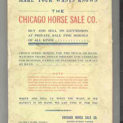 CAT, HORSE, 1901, IL. 5TH COMBINATION SALE OF SPEED AND FINE HORSES. CHICAGO HORSE SALE CO. 303 PP. 5 1/2" X 8 1/2"Created By