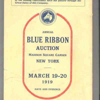 CAT, HORSE, 1919, NY. FASIG-TIPTON CO. BLUE RIBBON SALE. FAST HIGH-BRED HARNESS HORSES FOR TRACK, ROAD, SPEEDWAY AND THE STUD. GEORGE BAIN, AUCTIONEER. 6" X 8 3/4" X 1/2"Created By